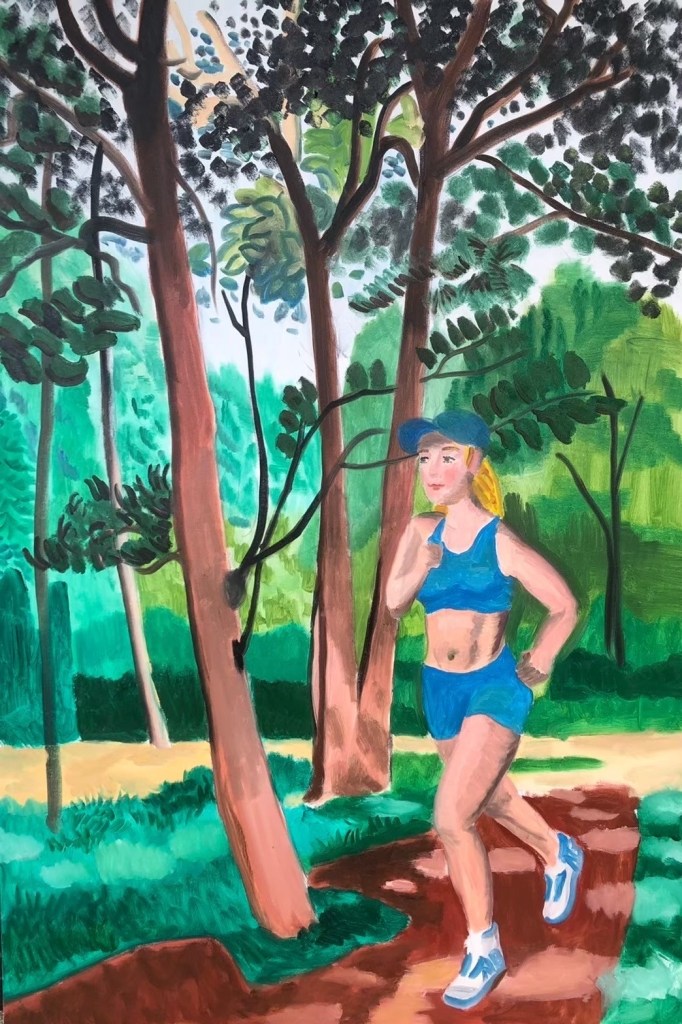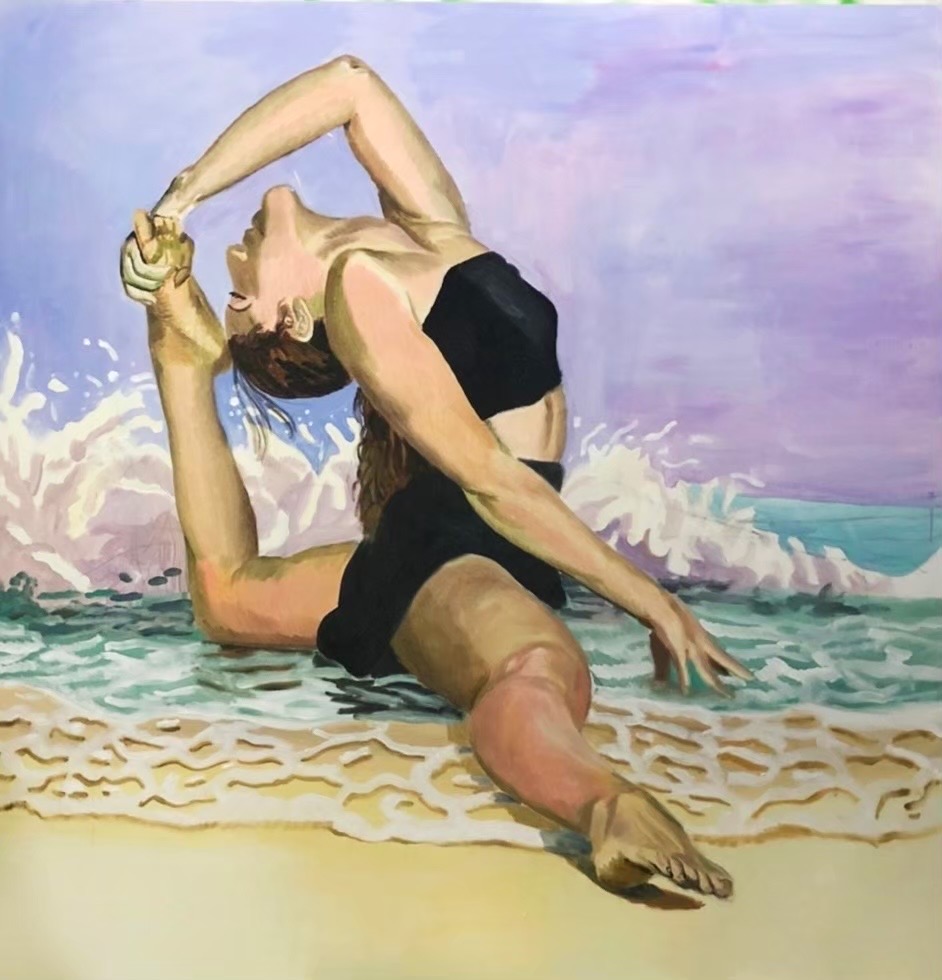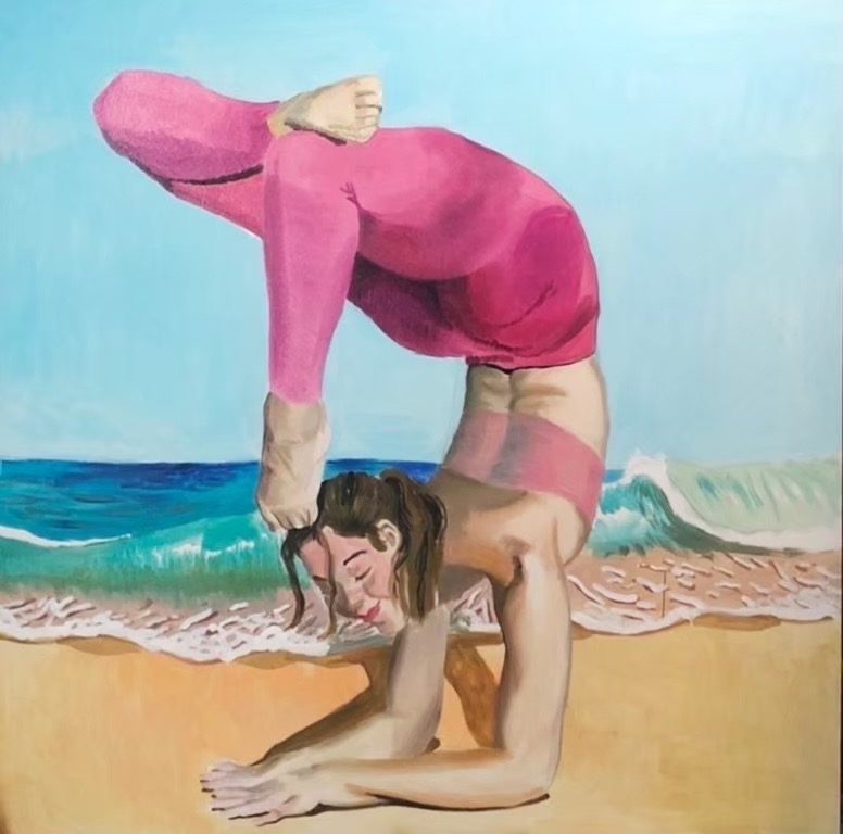 楊立是這次12位展出中最年輕的一位台灣藝術家,曾獲得2021台北美術獎,擅長以輕快的筆觸描寫社會寫實的生活紀錄,他的用色相對來說很討喜。