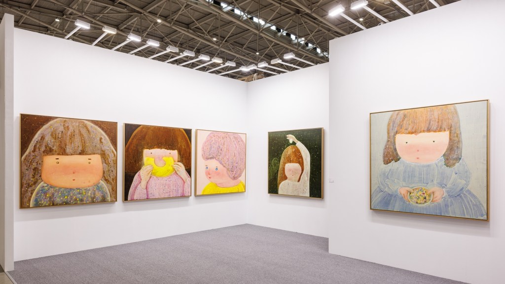 羅喬綾畫作在今年台北當代更是呈現了各種有趣面貌的孩童,依然能見到療癒人心的純真創作「跟著光走」「為你加油」「夜晚來臨時」「你藍藍的眼睛是我的大海」。