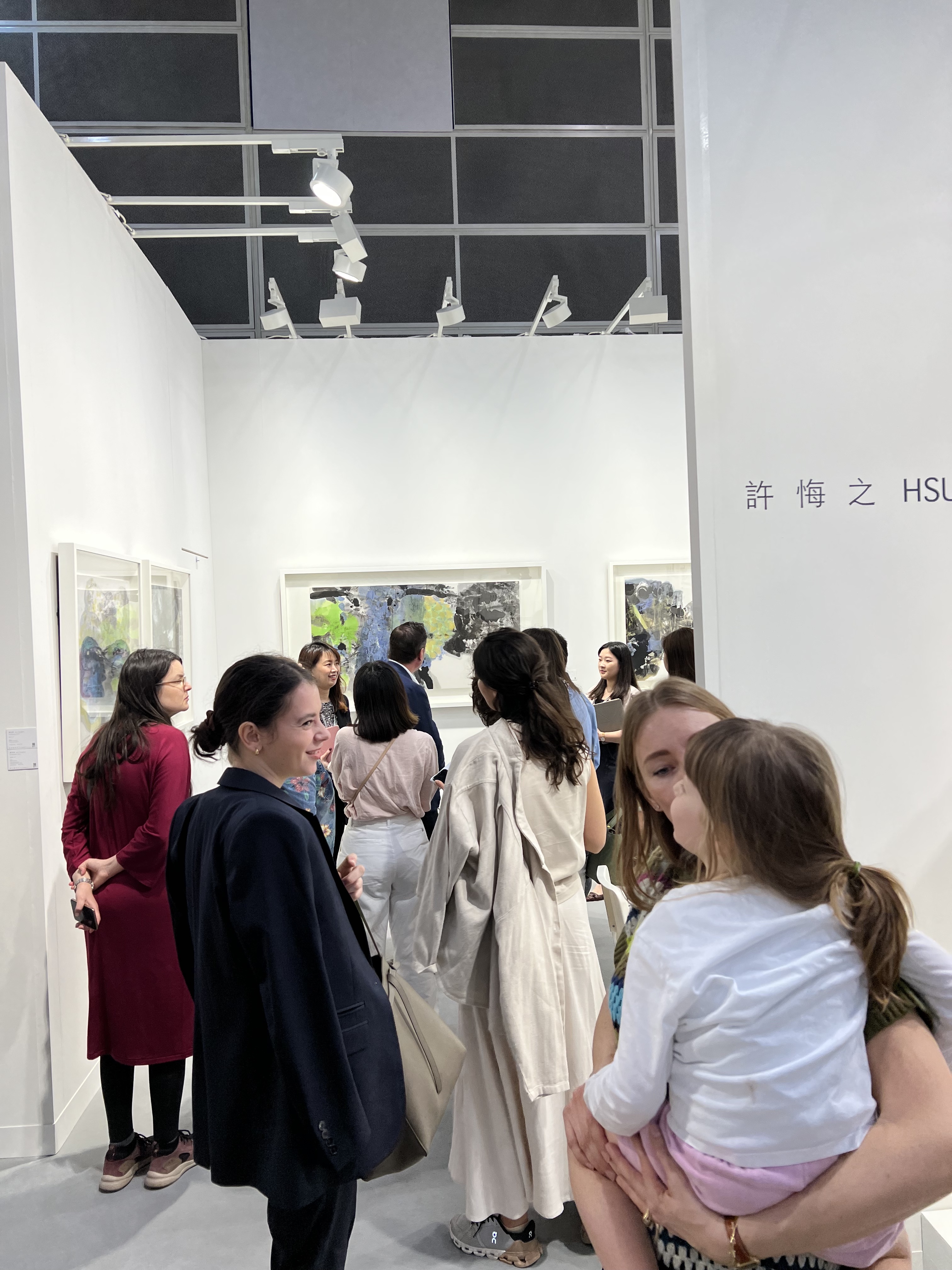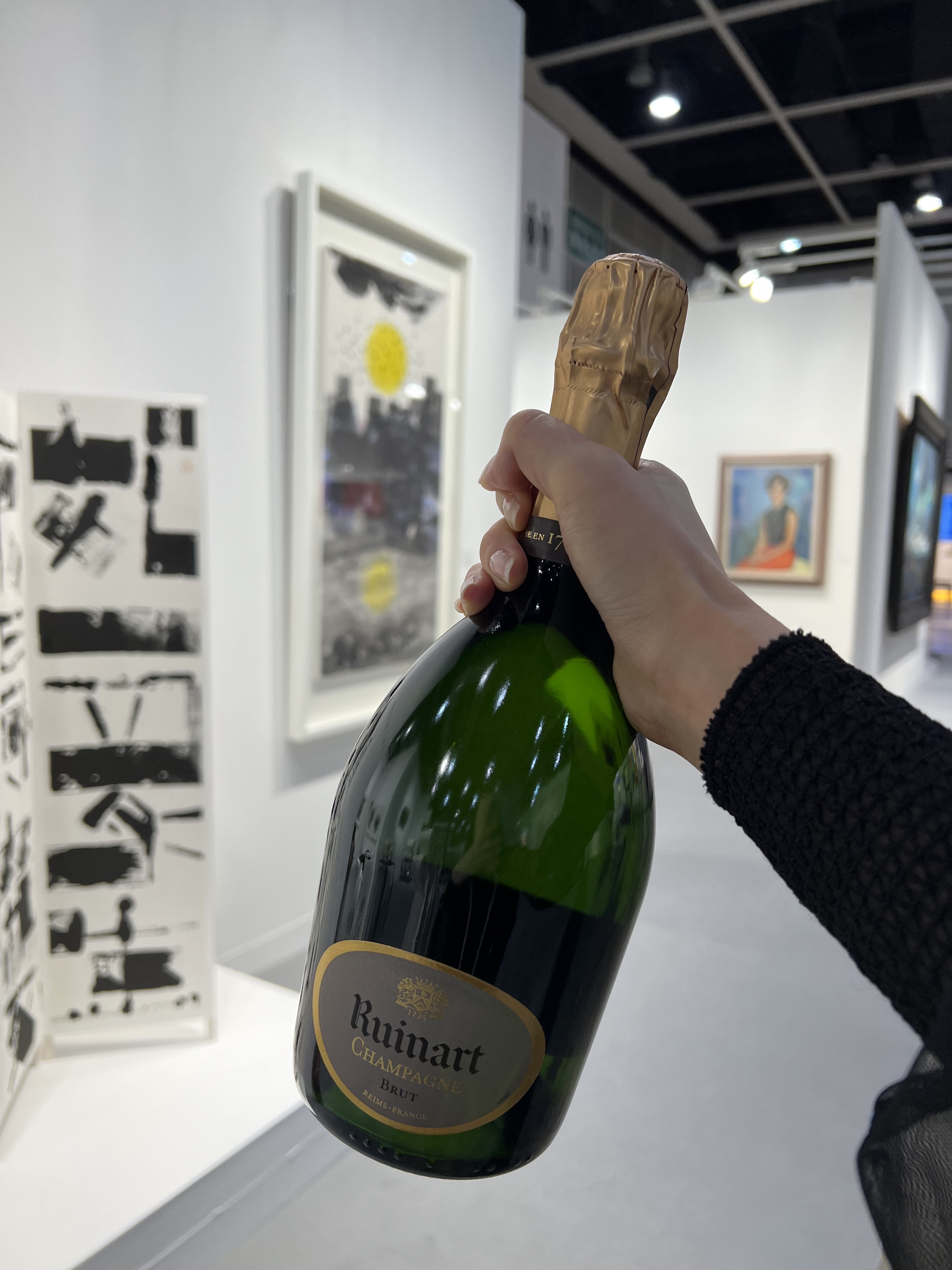 終於在佈展一天半之後,今年的香港巴塞爾展就要開始,第一天是VIP日也看到主辦商UBS瑞銀集團好多人來逛展場,主辦單位也送上了香檳預祝開展順利,美美的三個展位一起正式亮相,從左邊展位開始是徐永旭陶塑品與李重重抽象畫作,展位風格延續上次ArtSG參展的時候。