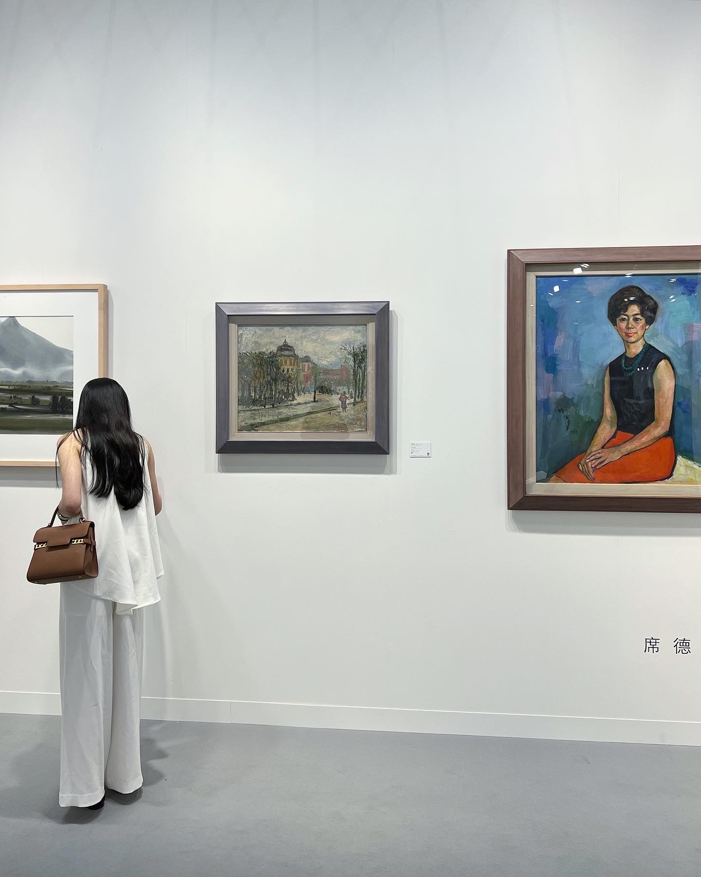 畫廊的第二個展位是台灣前輩與現代藝術家,展出經典畫作有陳澄波《淡水風景(二)》《嘉義公園(四)》、朱德群《無形的幻境》、席德進《遠眺雲山-埔里牛眠山》《秋景》以及于彭的數件現代水墨,精彩作品在貴賓日更是吸引了年輕藏家的關注和各界的詢問。