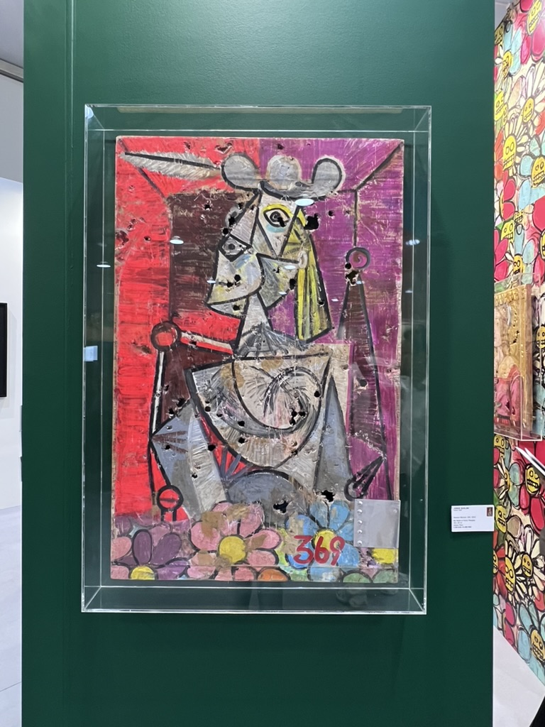 當代法國藝術家Joris Ghilini,《Seated Woman 369》融合自由拼貼、刮擦與厚重筆觸構成,保有鮮明的當代藝術語感。