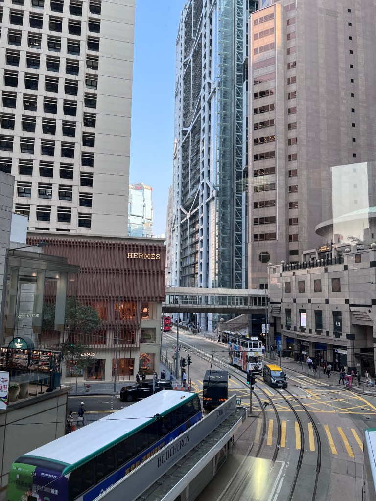 在置地廣場與鄰近的大樓的走道上,拍下香港交通穿梭的景象。
