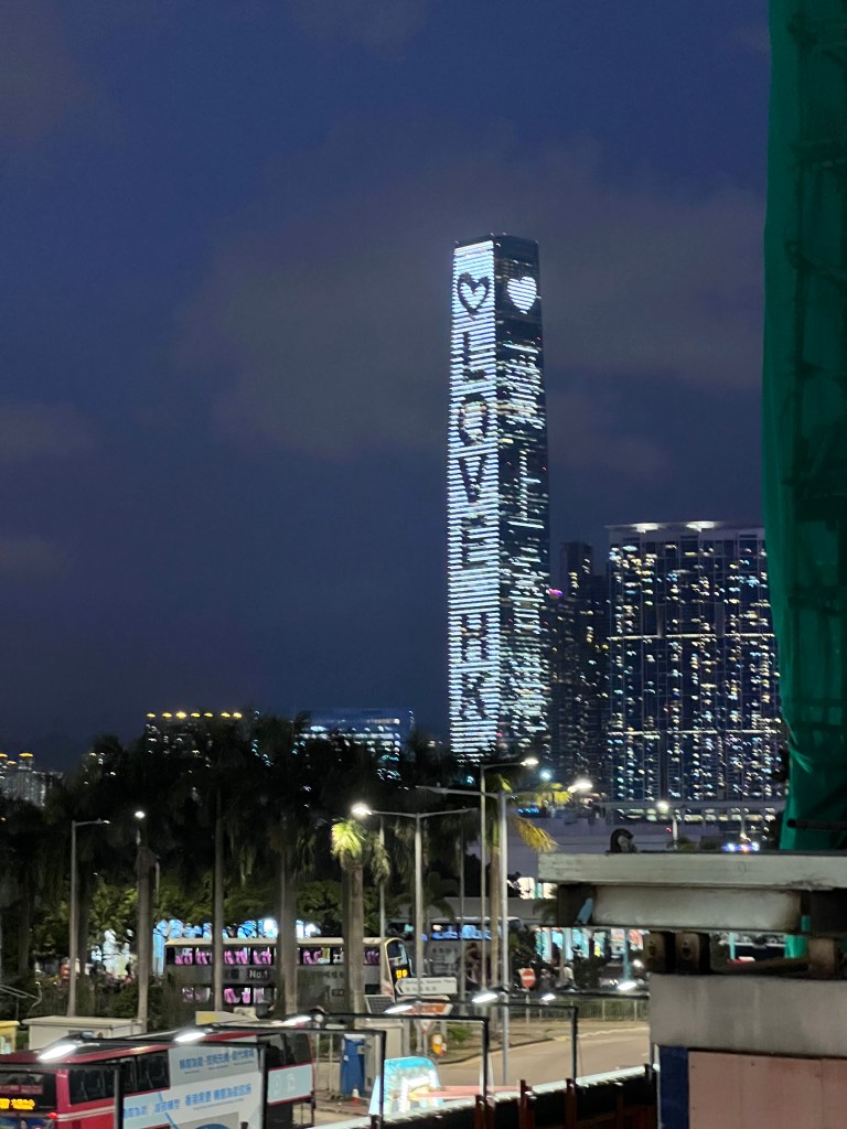前往Art Central藝博會的路上,走在天橋看到著名地標之一ICC大樓。