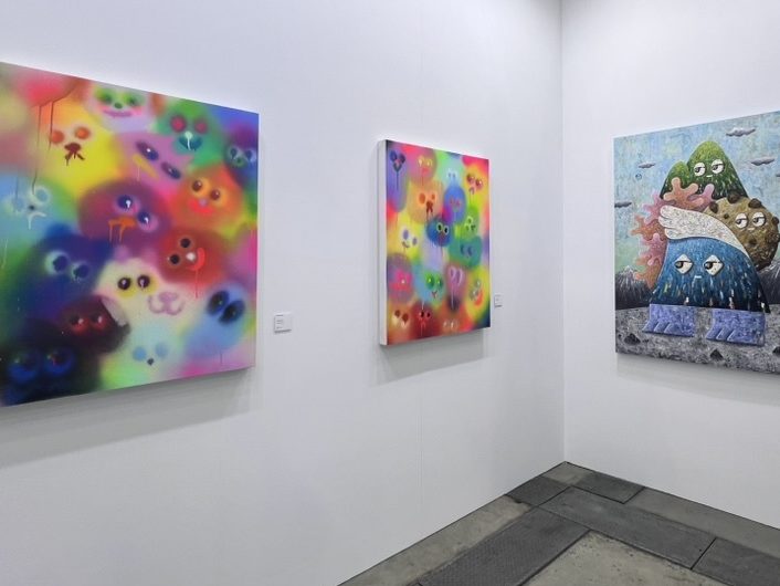 VIP日來到展會現場,首先看到台北畫廊Dopeness Art Lab,展出備受矚目的英國藝術家Felix Treadwell,構造了充滿童趣和幻想的生物主題畫作,2017年入選英國彭博新當代藝術獎。