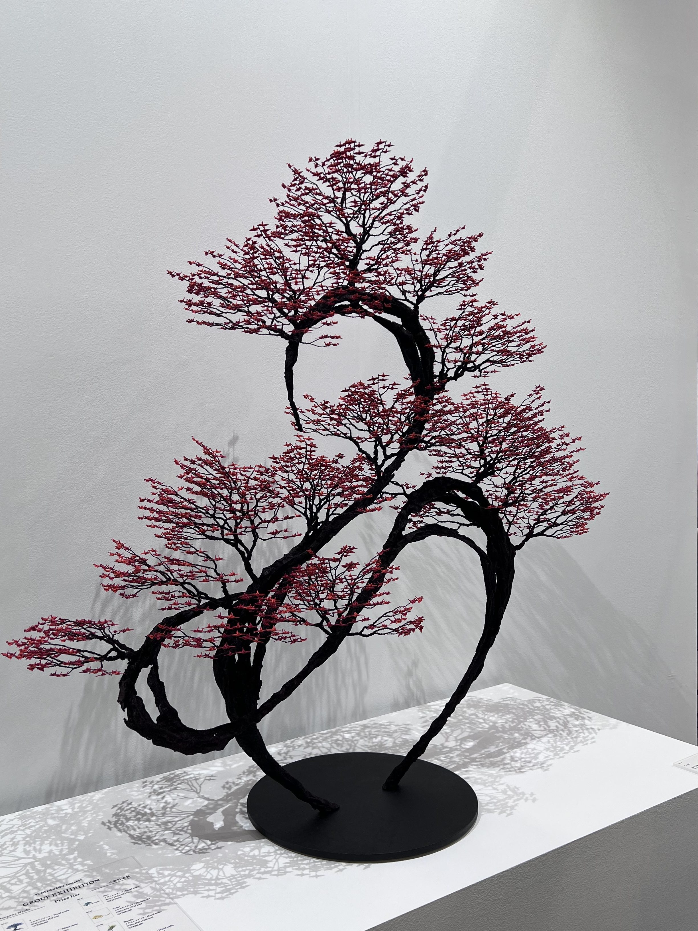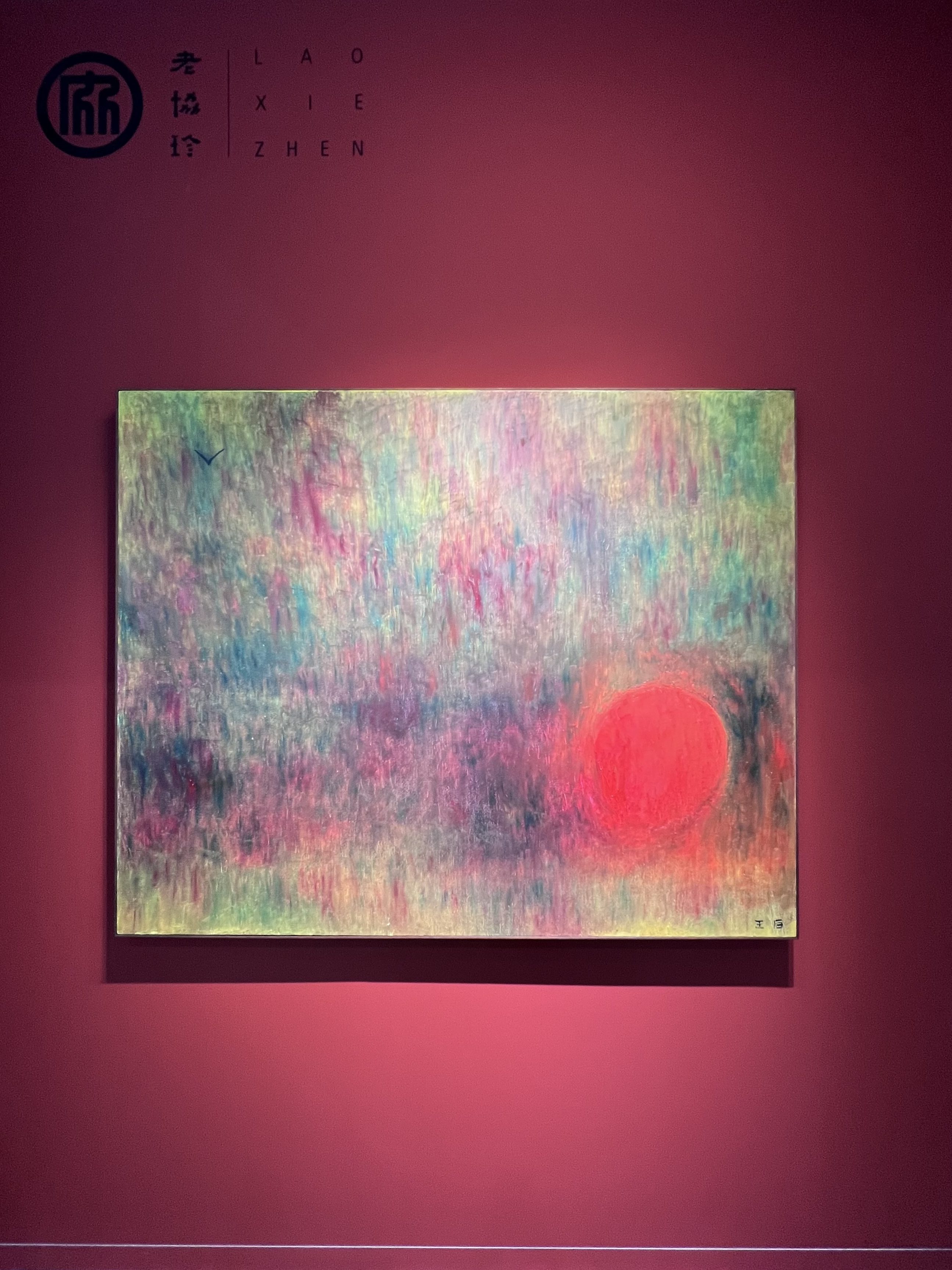 今年展會看到知名設計師Cindy Chao 珠寶展示,以及王攀元特展由老協珍與耿畫廊、青雨山房共同呈現,牆面以暗紅突顯藝術家經典之作《紅太陽》,象徵堅毅的信仰與精神。
